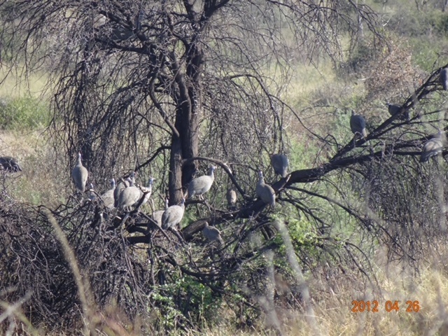 Springbock, Blessbock, Steppenzebra, Steinbock, Duiker, Giraffe, Strauss, Gepard, Luchs, Schakal und entsprechend der Jahreszeit: Tauben, Perlhühner, Wachteln, Frankoline und zahlreiche Sandgrouse.